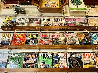 店内ではビンテージMK1から自社デモカー等を展示中、他に当時カタログやパーツ類、更に約2000冊以上のミニ書籍や約2万枚以上のミニ画像データも閲覧可能!2階は